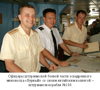С организацией штурманской службы на кораблях военно-морских сил Китайской народной республики я познакомился во время проведения совместных российско-китайских военных учений «Мирная миссия-2005» в августе 2005 года.