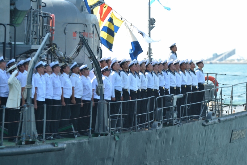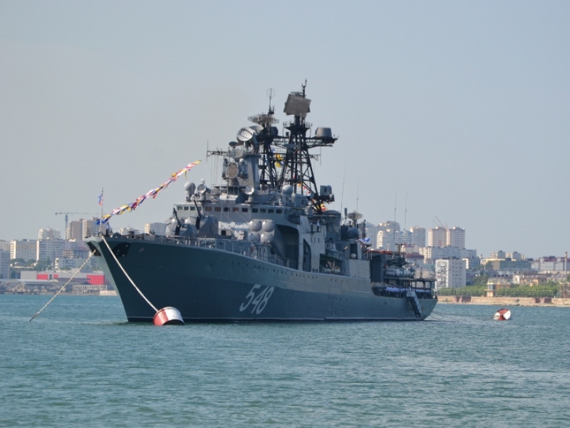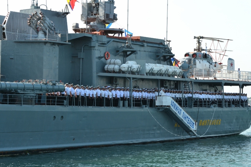 БОЛЬШОЙ ПРОТИВОЛОДОЧНЫЙ КОРАБЛЬ ТИХООКЕАНСКОГО ФЛОТА "АДМИРАЛ ПАНТЕЛЕЕВ" НА МОРСКОМ ПАРАДЕ В НОВОРОССИЙСКЕ