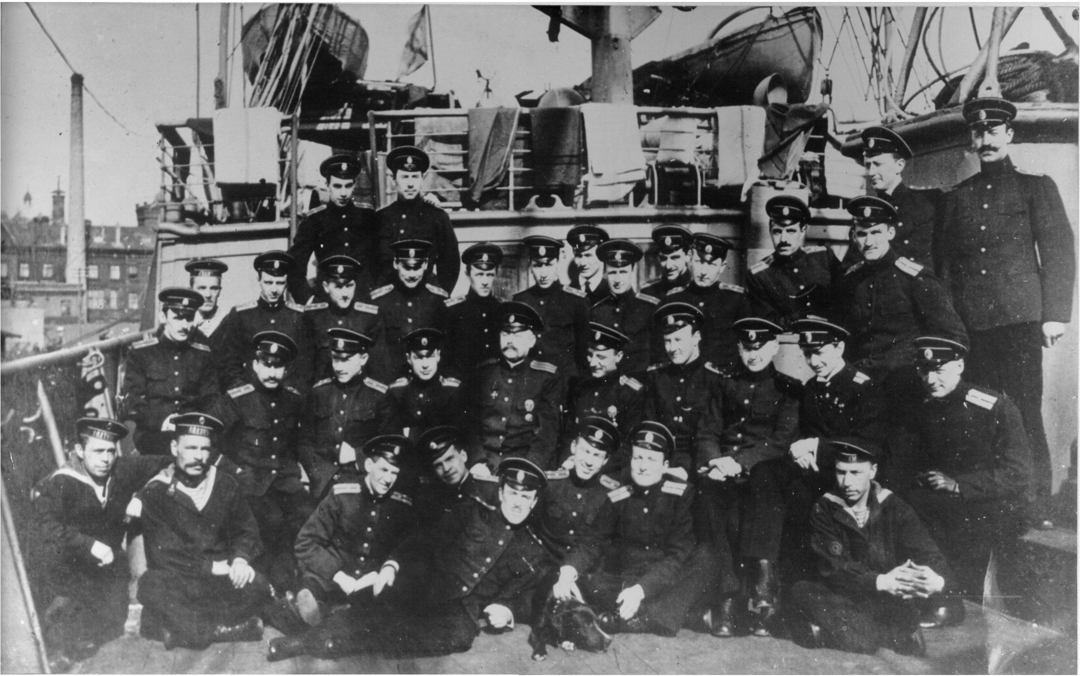 Выпуск Временного Штурманского офицерского класса, март 1917 г. Гельсингфорс, транспорт «Митава» (слева направо):