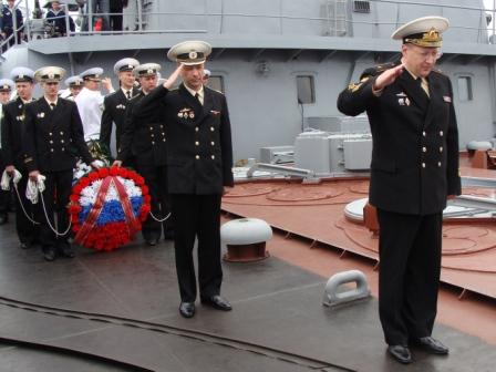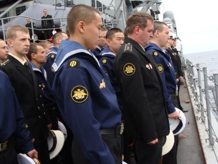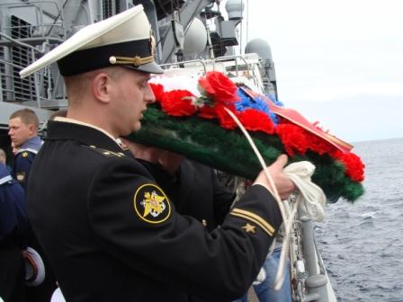 Во время дальнего океанского похода моряки гвардейского ракетного крейсера "Варяг"почтили память экипажа подводной лодки "К-129".