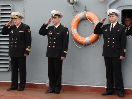 командир отряда кораблей контр-адмирал Касатонов В.Л. и командир крейсера гвардии капитан 1 ранга Москаленко Э.В. |