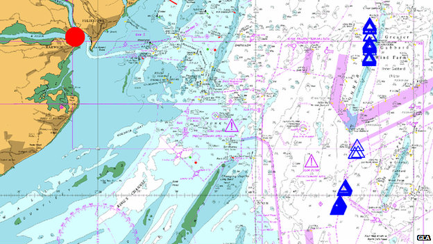 Маячные службы Великобритании и Ирландии опубликовали карту, на которой изображено влияние произошедшего. Как следует из предоставленного изображения, приемник системы в Харвиче (красная точка) предоставлял неверную позицию с отклонением более чем в 50 километров (синие треугольники).