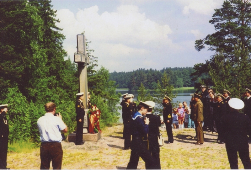 Мы делали всё, что могли: скребли, чистили гранит креста, убирали территорию, а умельцы во главе с мичманом В. А. Бородавко начали колдовать над установкой барельефа. Пока мы работали, из лесу по небольшой дорожке, идущей к памятнику, видимо, от какого – то поселения, появился невысокого роста подтянутый мужчина в чёрном костюме.