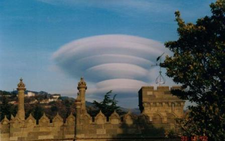 Вид облаков, которые изображены на фото, действительно необычен. Их можно принять даже за некий неопознанный летающий объект. Но "объект" этот не летает, да и вообще не двигается. Эти облака остаются неподвижными, как бы ни был силен ветер.