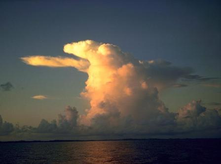 Как возникают шквалы? Постепенно жара усиливается, а на небе появляются кучевые облака. Эти облака возникают на вершинах восходящих потоков теплого воздуха, поднимающегося с прогретой солнцем земной поверхности. Там, на высоте, он достаточно охлаждается, чтобы содержащаяся в нем влага превратилась в видимое нами кучевое облако. Такие облака обычно появляются на небе к 10 часам утра. Пик конвекции наблюдается к 3-4 часам после полудня, когда такие облака имеют максимальное развитие, как по количеству, так и по площади.