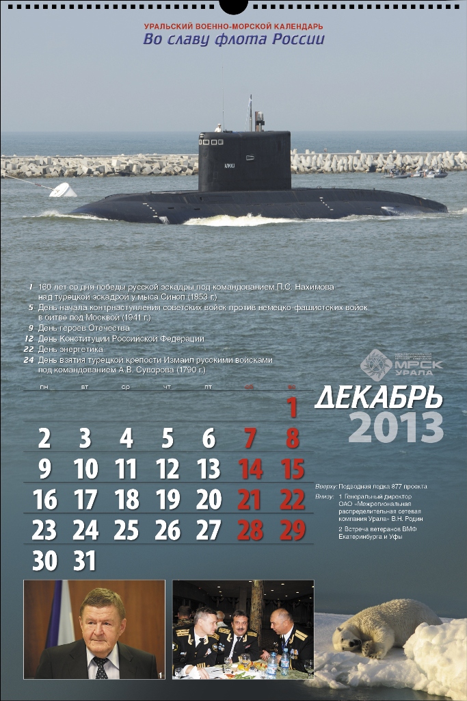 УРАЛЬСКИЙ ВОЕННО-МОРСКОЙ КАЛЕНДАРЬ - 2013