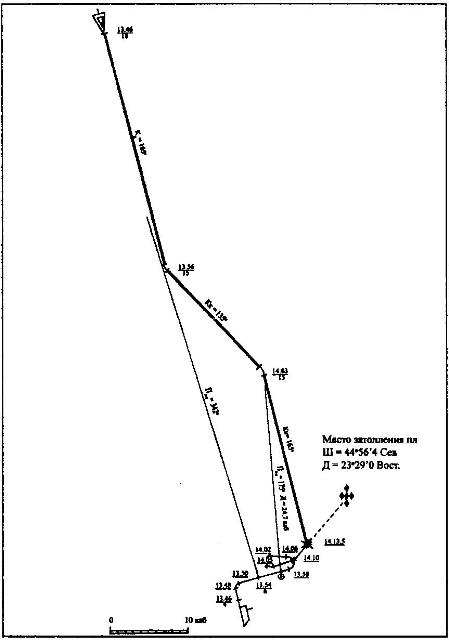 Схема посадки на мель пл «Крокодил» 20.09.1915 г. |