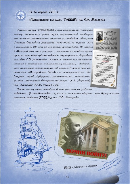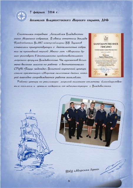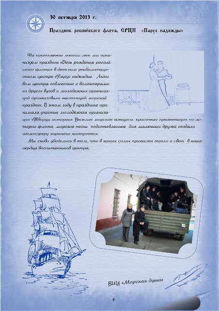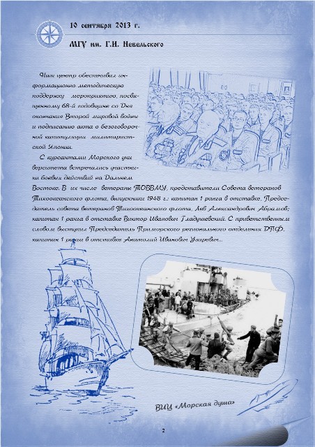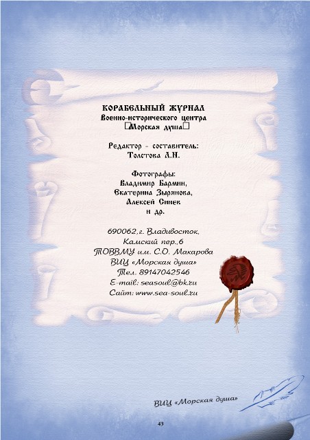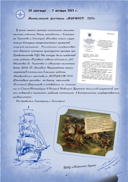 Подробно о деятельности военно-исторического центра "Морская душа" можно познакомиться на сайте http://www.sea-soul.ru