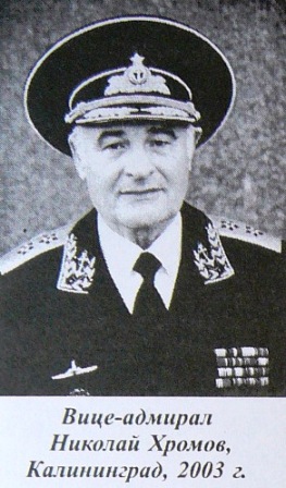 С 1974 по 1976 гг. Хромов служит вначале начальником Штаба 37 ДиПЛ, а затем - командиром этой дивизии, и ему присваивается звание «контр-адмирал». С 1976 по 1984 гг. Николай Хромов становится командиром 14 Эскадры ПЛ Балтфлота, в начале 1984 г. ему присваивается звание «вице-адмирал». Вскоре Хромов назначается заместителем командующего Балтийским флотом -начальником тыла ДКБФ. В конце 1990 года вице-адмирал Николай Хромов увольняется в запас по возрасту. Впереди - общественная деятельность, в 1994 году избирается председателем Совета ветеранов Балтийского Флота.