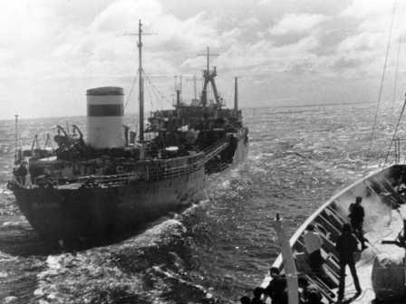 1977 г. Индийский океан. Заправка в море - танкер "Ахтуба" и ОИС "Абхазия" |